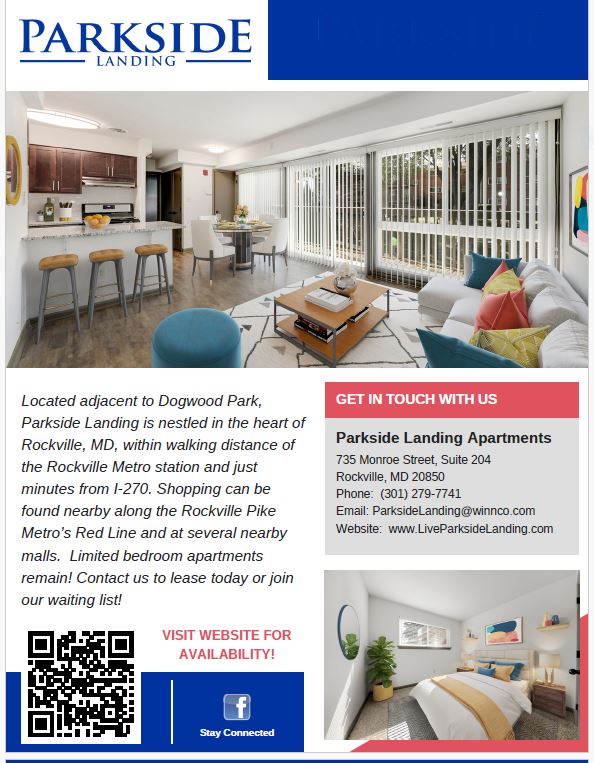 The Mayor and Council celebrated the reopening of Parkside Landing Apartments in September. Originally built in 1961 as Fireside Park Apartments, a 2018 fire destroyed three of the buildings, comprising 32 apartments, displacing families. The property has been owned by Rockville Housing Enterprises, the housing authority for the City of Rockville, since 2012. Read more about the grand re-opening >